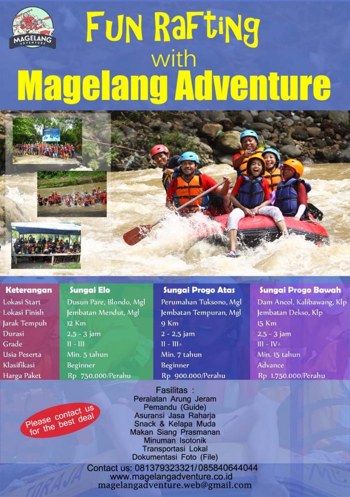 Magelang Adventure mengundang Anda untuk menikmati Arung Jeram (Rafting) di Magelang dan menikmati paket-paket wisata lain yang kami tawarkan. Kami siap melayani anda secara prima